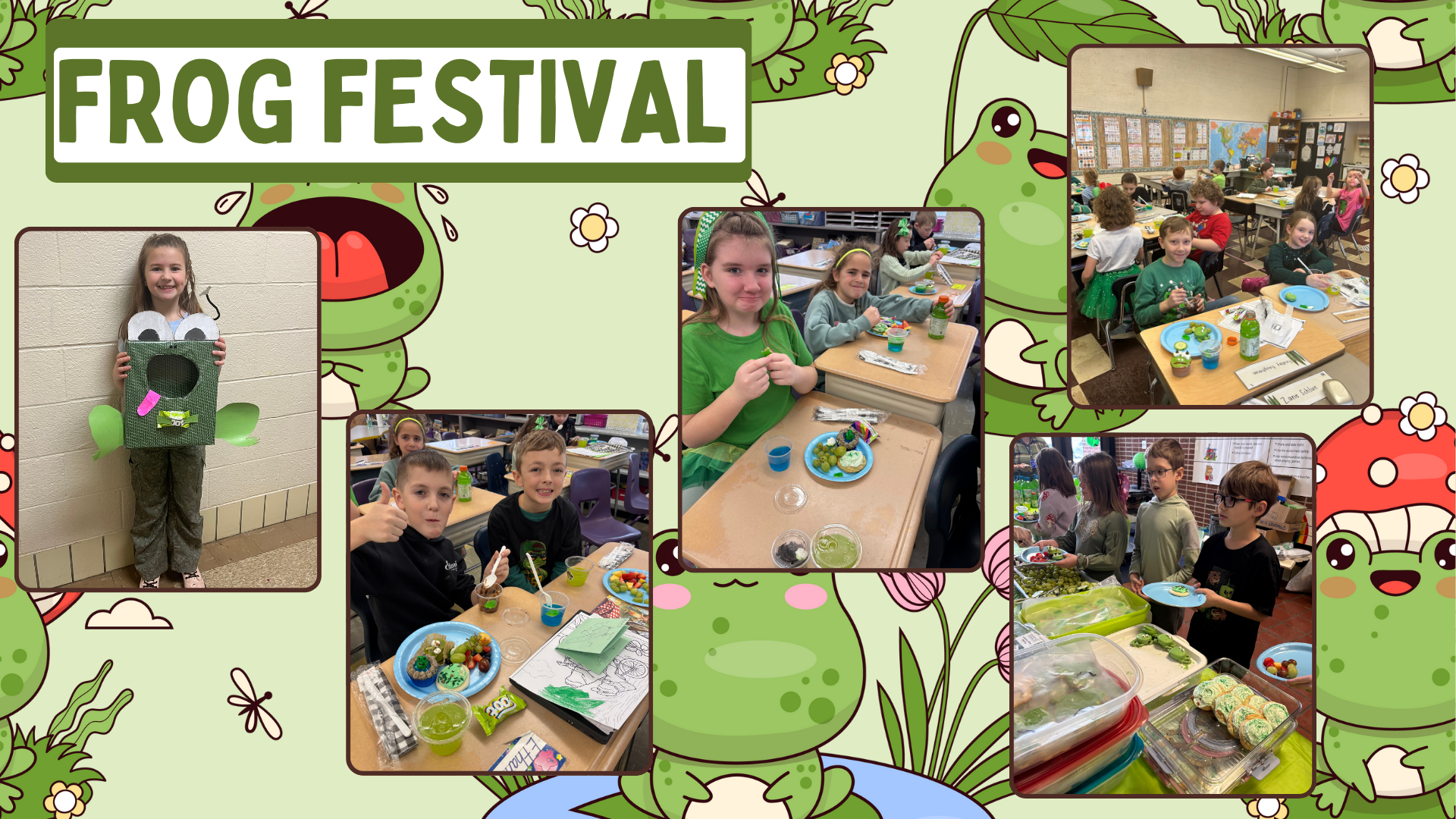 Third graders have concluded their frog-themed unit in ELA, which focused on building their reading, research, writing, and collaborative discussion skills through the study of “freaky frogs”. To celebrate all of their hard work, they had their fourth annual “Frog Festival” on Friday, February 6. At the festival, students enjoyed frog-themed snacks and toadally delicious goodies! The fun continued in the classrooms as they shared their frog paragraphs, freaky frog trading cards with each other, and enjoyed fun frog activities. Special thanks to all of the parents, custodial staff, and cafeteria staff for all of their generous donations and hard work!