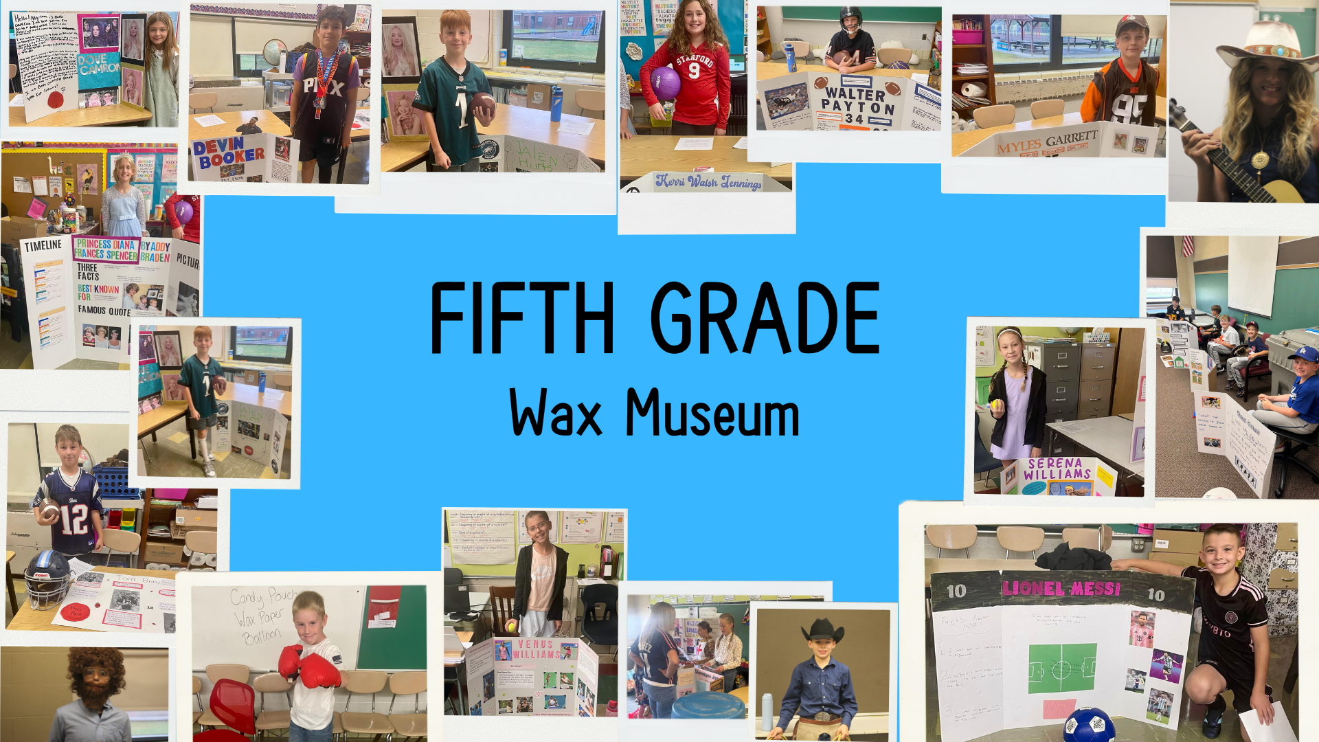 The 5th Grade Wax Museum is a fun and educational annual event where students bring history to life! Each student chooses a famous person to research and writes a short speech highlighting that individual’s life and accomplishments. On the day of the event, students dress up as their chosen figure and stand “frozen” like statues. When visitors press their “button,” the students come to life and recite their speeches, sharing what they’ve learned in an engaging and memorable way. Great job, 5th grade!